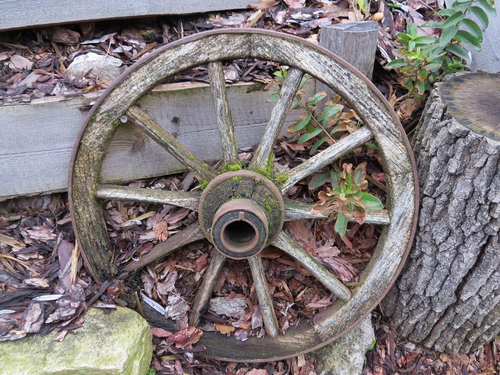 Certains objets de jardin anciens trouvent très bien leur place comme rappel du lieu.