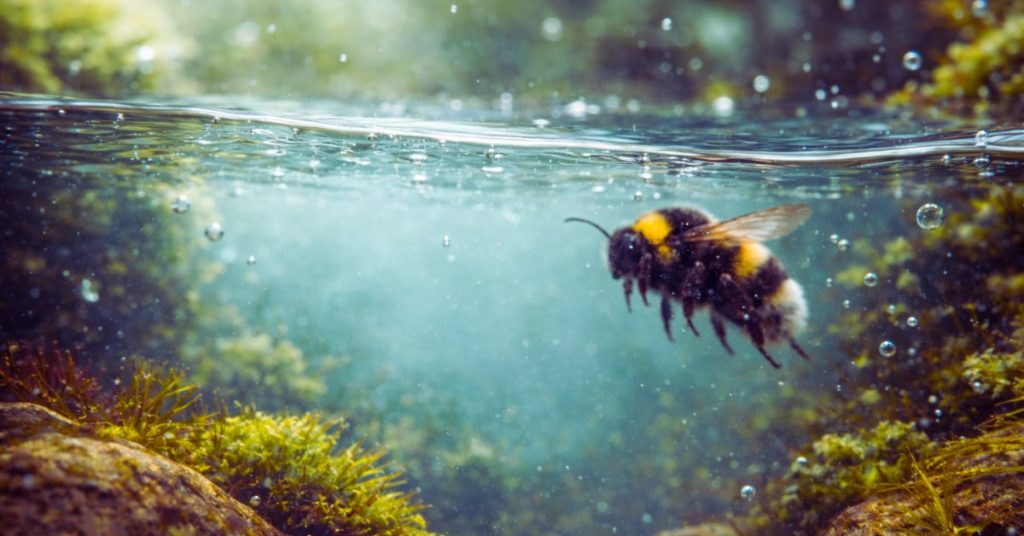 Des chercheurs ont montré que certaines reines de bourdons peuvent survivre plusieurs jours complètement immergées dans l’eau, parfois jusqu’à une semaine. Une performance inattendue pour un insecte qui passe pourtant la majorité de sa vie… dans l’air.